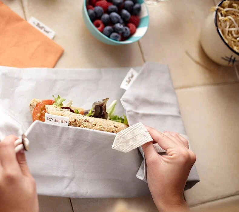 By Roll'eat Boc'n'Roll Bio Herbruikbaar Boterhamzakje 45 X 32 Cm Katoen Grijs -Keukengerei Verkoop bnr gris lifestyle