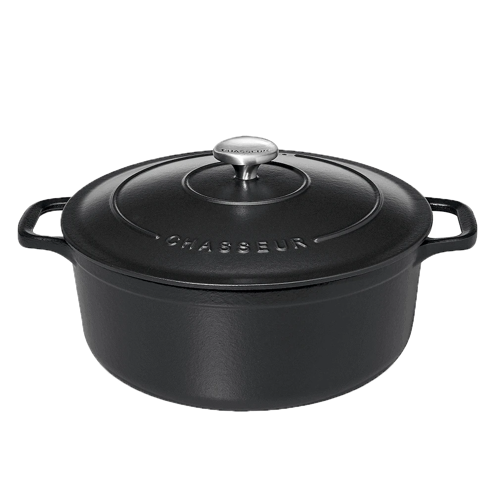 De Oldenhof by Chasseur braadpan is vervaardigd uit mat zwart, geëmailleerd gietijzer en heeft tevens een matzwarte binnenzijde. De ronde pan heeft een diameter van 28 cm en een inhoud van 6,1 liter. Hiermee is de pan geschikt voor het maken van gerechten voor 6-8 personen, bijvoorbeeld voor soepen of stoofgerechten. De Chasseur braadpan is geschikt voor gebruik op alle warmtebronnen, inclusief inductie en de oven.