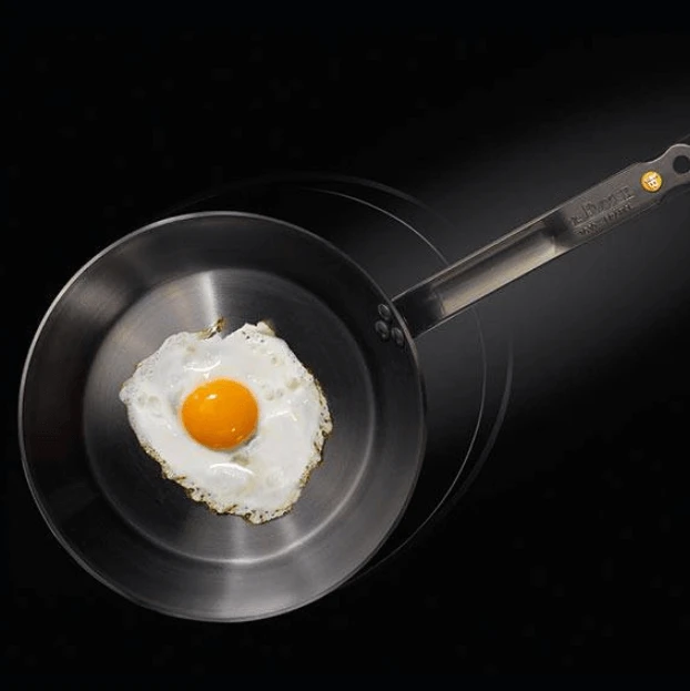De Buyer pannen zijn gemaakt van roestgevoelig plaatstaal. Als deze roest aan de onderkant van de pan vormt, kan het zijn dat de bodem geen contact meer kan maken met een inductiekookplaat. Om deze reden raden wij het gebruik van de Buyer pannen op inductie af.