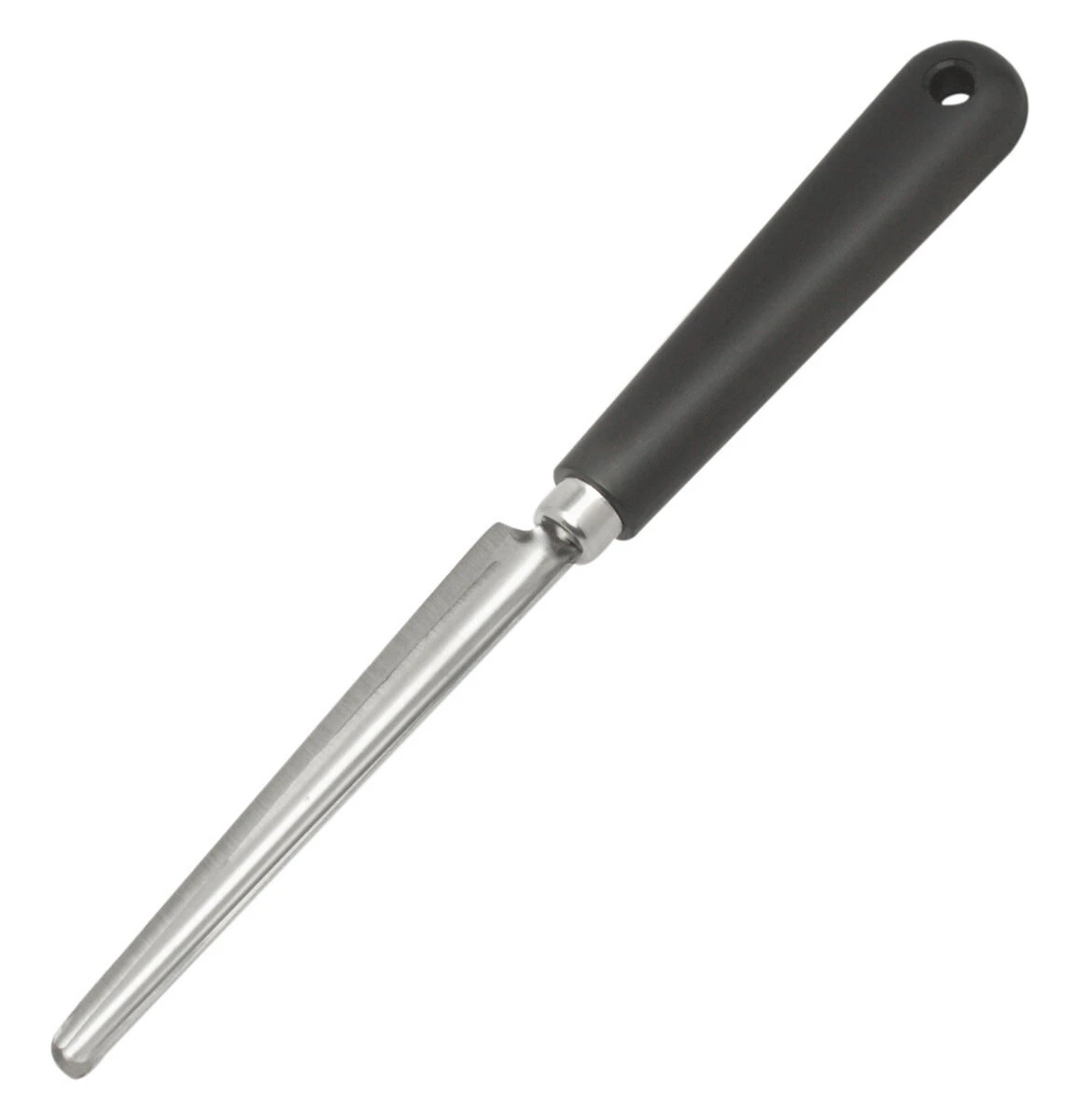 De Deglon courgetteschraper is vervaardigd uit roesvrij staal en kunststof. De schraper is aan beide zijden geslepen waardoor u eenvoudig het vruchtvlees uit een courgette verwijdert. Dit doet u bijvoorbeeld voor het maken van gevulde courgette.