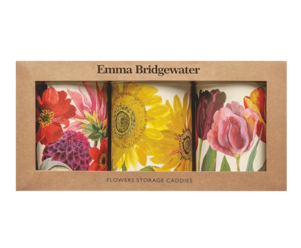 Deze Emma Bridgewater blikkenset in de print Flowers is gemaakt van blik en heeft een lengte van 14,5 cm en een breedte van 10,5 cm. Op de blikken staan bloemen afgedrukt. Gebruik de blikken om koekjes of andere etenswaren in te bewaren.