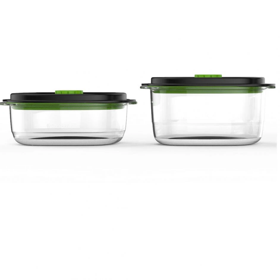 De FoodSaver Fresh 2.0 vershouddozen zijn vervaardigd uit transparant, BPA-vrij en voedselveilig kunststof. De voorraaddozen hebben een inhoud van 700 ml en 1,2 liter. Met de vershouddoos blijven ingrediënten en maaltijden langer vers en ontstaan er geen nare geurtjes in je koeling.
