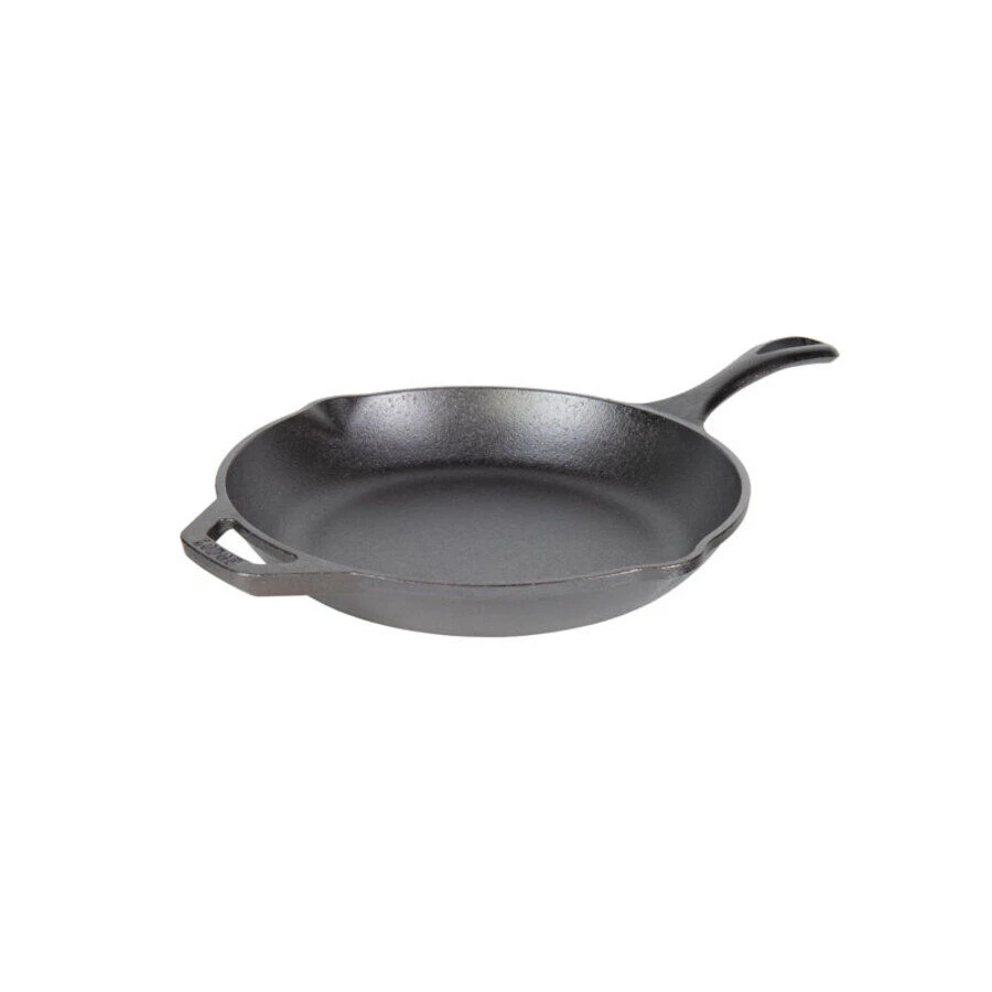 De gietijzeren Lodge Logic Chef skillet koekenpan is in de fabriek voorbehandeld met plantaardige olie. Door het gebruik ontstaat een natuurlijk anti-aanbakeffect. Voorzien van een tegengreep voor extra draaggemak. Twee schenktuiten maken het uitschenken gemakkelijk.