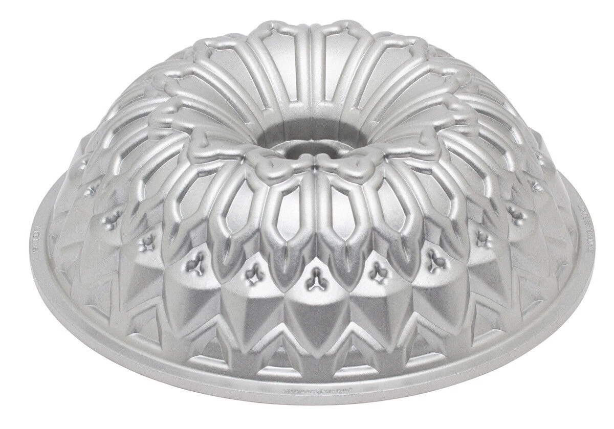 De Nordic Ware Stained Glass tulband bakvorm is gemaakt van aluminium en voorzien van een antikleeflaag. De antikleeflaag zorgt voor een eenvoudige lossing. De vorm heeft een diameter van 26 cm en een hoogte van 9 cm. Gebruik de vorm voor het bakken van een tulbandcake of -brood met een bijzonder patroon dat geïnspireerd is door de glas-in-lood patronen van Franse kathedralen.