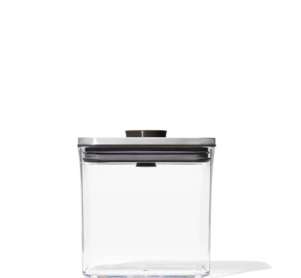 De OXO Good Grips POP 2.0 voorraadpot is gemaakt van BPA-vrije kunststof. De POP container is rechthoekig van vorm en heeft een inhoud van 1,6 liter. De lengte is 16 cm, de breedte is 11 cm en de hoogte is 16 cm. Geschikt voor het bewaren en vers houden van diverse ingrediënten. Voorzien van een deksel die, extra goed, luchtdicht afsluit. Deze is gemaakt van roestvrij staal voor een chique uiterlijk.