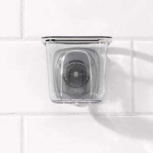 Praktisch en stijlvol, dat is dit douchemandje van OXO Good Grips. Het design is 20,3 cm lang, 10,2 cm breed en 7,5 cm diep. Het douchemandje hangt u zonder boren eenvoudig aan een tegelwand of spiegel. Duw de zuignap tegen de wand en klik deze vast, schuif vervolgens het mandje over de zuignap. In de onderkant van het bakje zitten openingen waardoor water weg kan lopen.