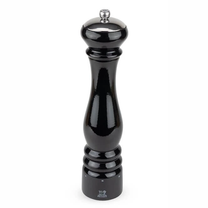 De Peugeot Paris Icône Noir zoutmolen heeft het klassieke Peugeot model dat is herzien. De molen is gemaakt van zwart gelakt beukenhout. Aan de bovenzijde heeft de molen een roestvrijstalen kap. Hierdoor krijg de 30 cm hoge molen een moderne uitstraling. Het maalwerk in de molen is vervaardigd uit roestvrij staal. De molen is voorzien van u-select, waarmee u de grofheid van het zout traploos kunt instellen. Op de metalen draaiknop bovenop bevindt zich de het logo van Peugeot.