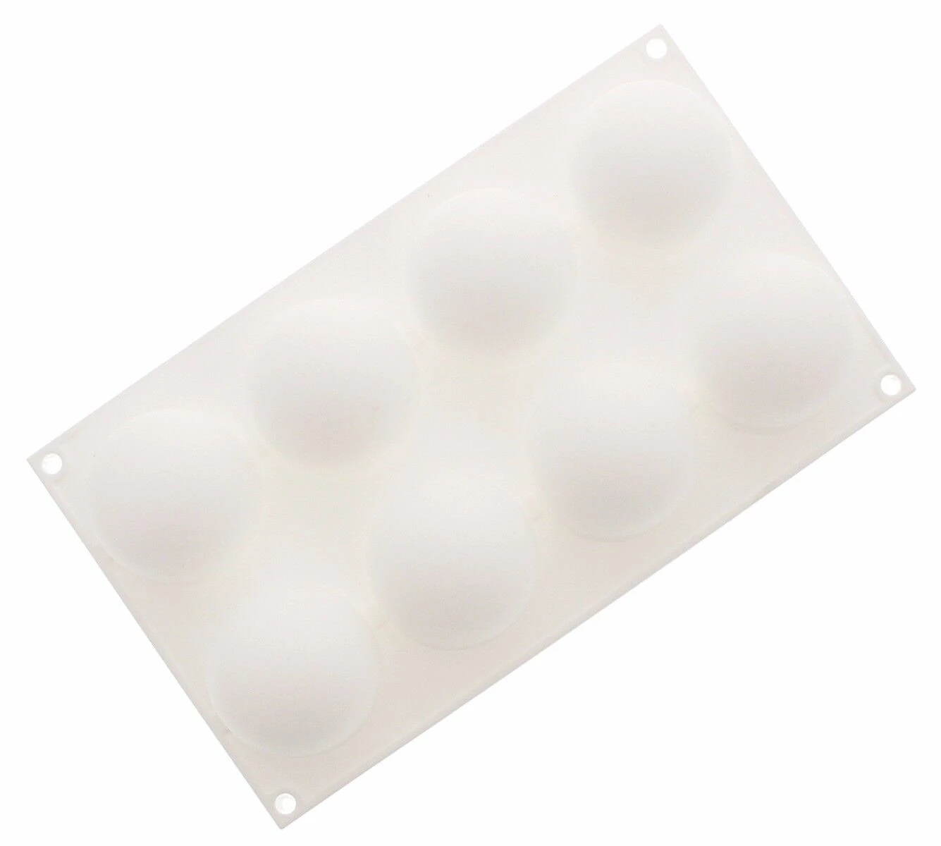 De Silikomart Professional Truffles 120 bakvorm bevat 8 bolvormen elk met een inhoud van 117 ml, een diameter van 6,2 cm en een hoogte van 5,2 cm. De vormen zijn voorzien van een speciale rand waardoor de bollen een vlakke onderkant krijgen zodat u de bollen gemakkelijk kunt presenteren. De witte siliconen bakvorm is in totaal 30 x 17,5 cm (l x b) en geschikt voor gebruik in de magnetron, oven en diepvries.