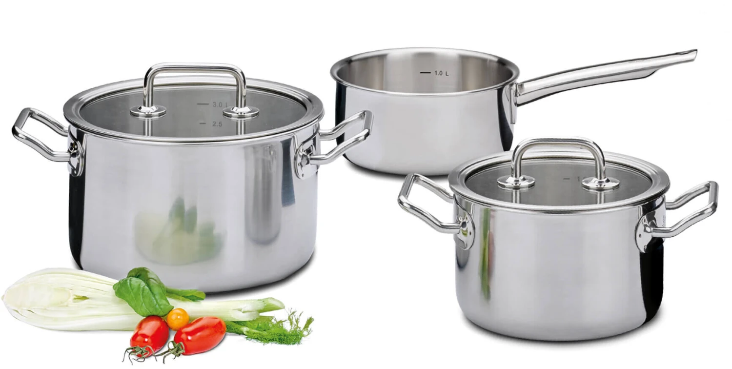 De Spring Brigade pannenset bestaat uit 2 kookpannen en een steelpan. De set is vervaardigd uit geborsteld roestvrij staal en heeft een aluminium kern voor een goede, gelijkmatige warmteverdeling. Gebruik de Spring pannen voor uw dagelijkse kookwerkzaamheden in de keuken. De kookpannen zijn voorzien van glazen deksels.
