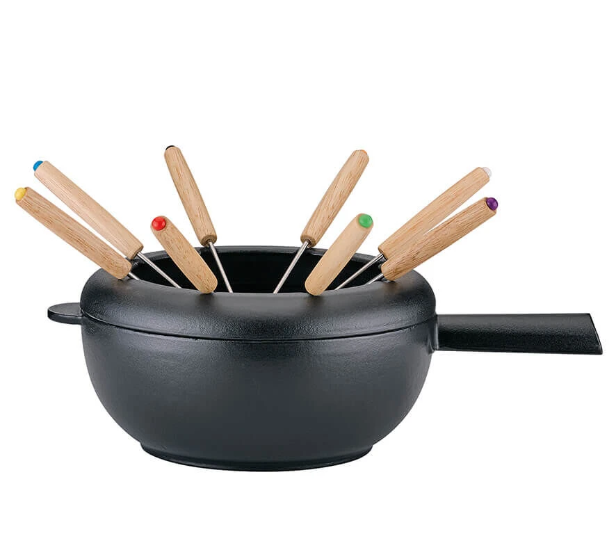 Gebruik de Spring kaasfonduepan om tot 8 personen mee te kaasfondueën. De vorken hebben elk een eigen kleur om ze gemakkelijk te kunnen herkennen.