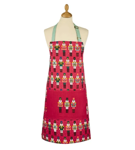 Dit Ulster Weavers schort in de kersuitvoering Nutcracker Parade is gemaakt van katoen. Het schort is rood van kleur en is voorzien van notenkraker poppen in kerstsferen. Gebruik het schort om uw kleding tegen spetters en vlekken te beschermen. Het schort is 95 cm lang en 70 cm breed.