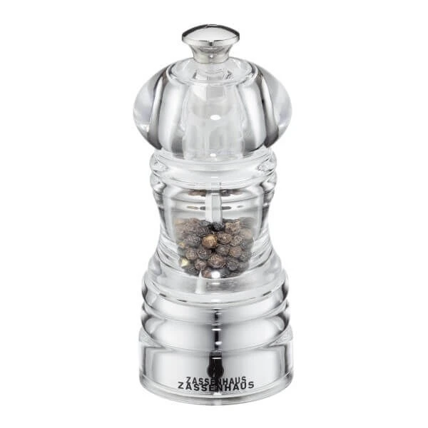 De Zassenhaus Berlin pepermolen heeft een klassieke uitstraling. De pepermolen is vervaardigd uit transparant acryl en heeft een keramisch maalwerk. De pepermolen van Zassenhaus is 12 cm hoog.
