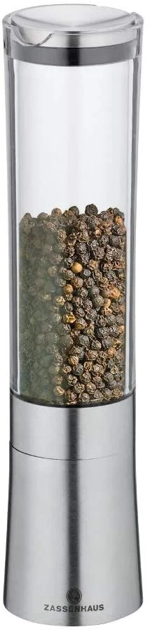De Zassenhaus Koblenz pepermolen is gemaakt van transparant acryl met roestvrijstalen accenten en voorzien van een keramisch maalwerk. De molen is 21 cm hoog en heeft een diameter van 5 cm. Het maalwerk is in 6 standen in te stellen van zeer fijn tot zeer grof.
